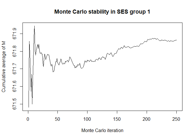 # approximation of the mean of M over the Monte Carlo iterations for SES group 1: