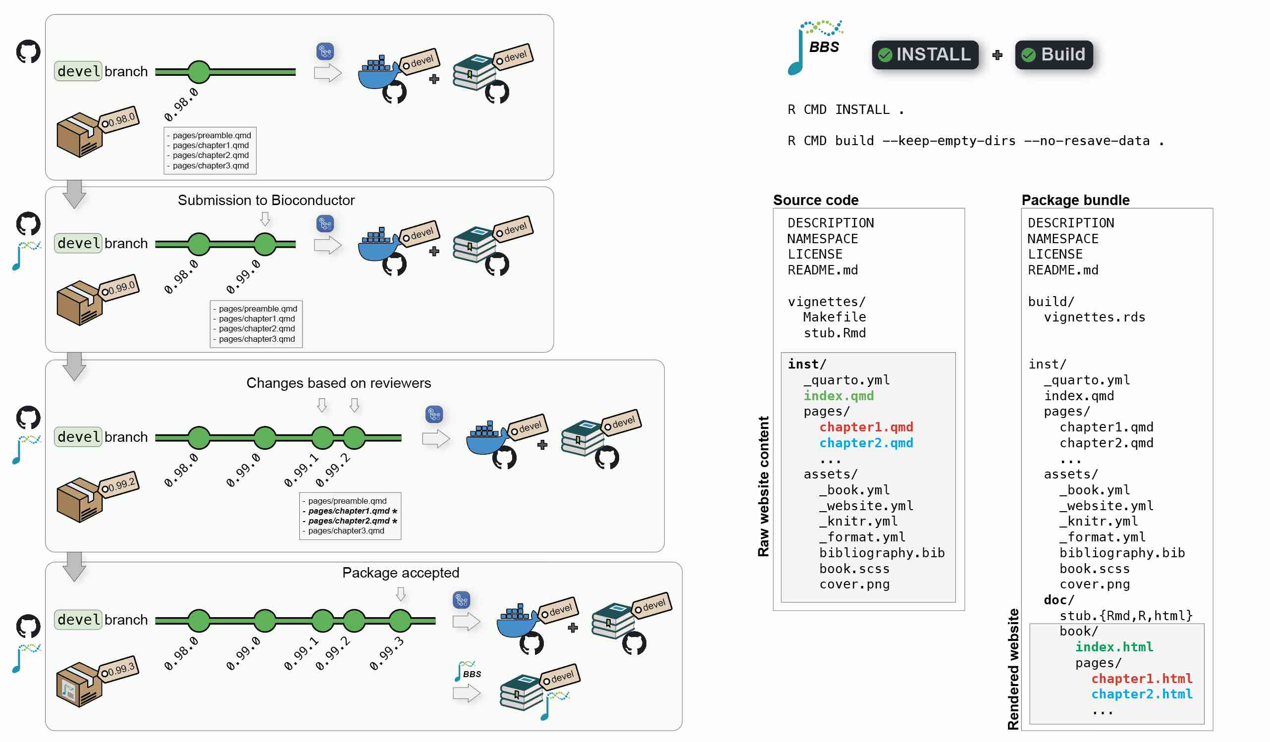 - When a book package is accepted, it starts being regularly built by the Bioconductor Build System (BBS).