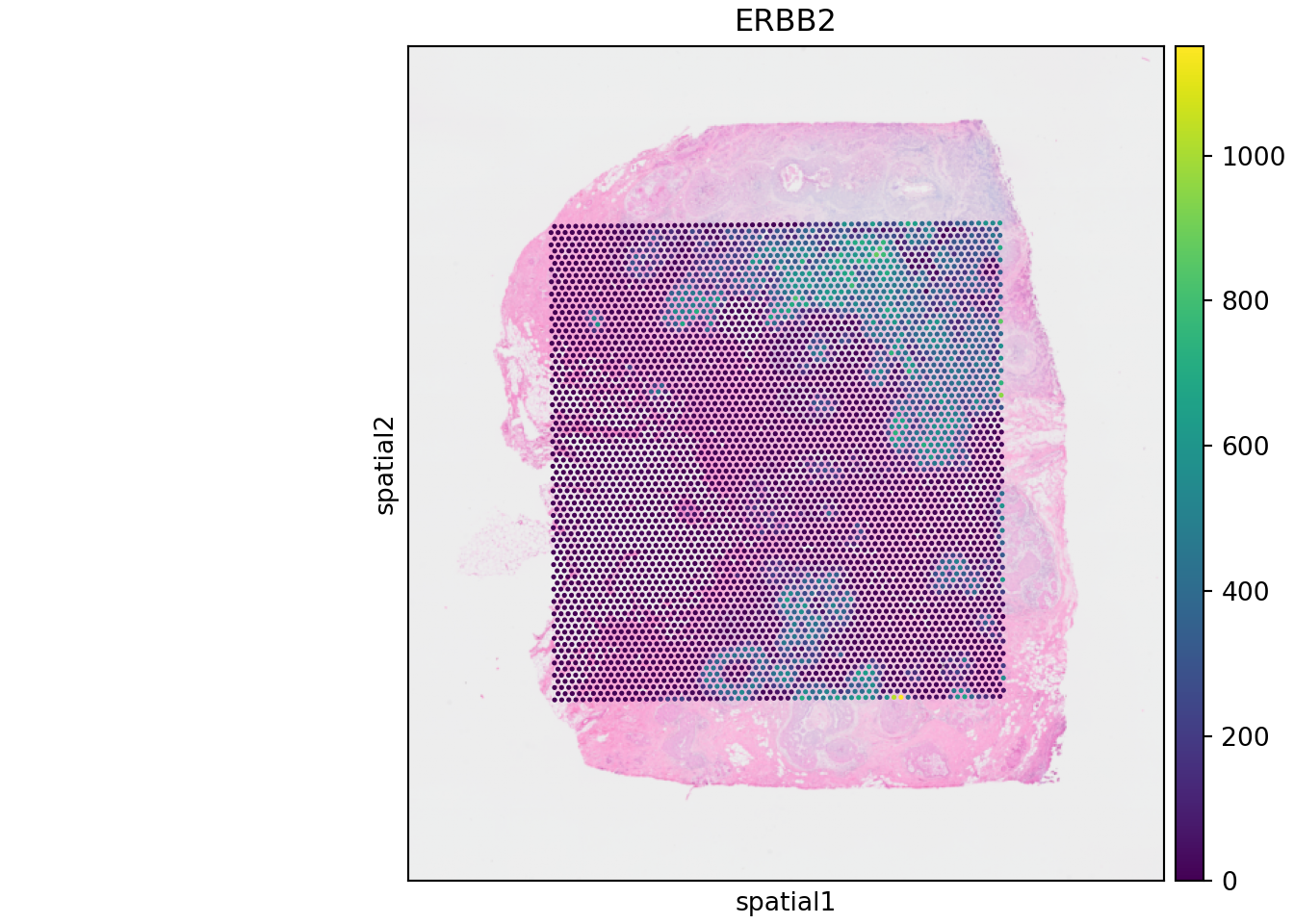 Read in spe.h5ad and visualize features or gene expression (e.g. ERBB2):