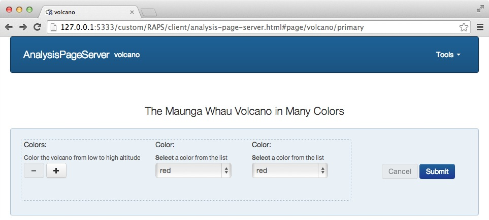 Using the complete AnalysisPageServer system we can build an application that not only combines these two features—customization via parameters and plot/data interactivity—but also features a user interface to select parameter values.