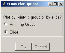 Select "Slide" to obtain one box plot for each slide in the set of arrays, rather than one box plot for each print-tip group of a single slide (the other option, "Print Tip Group").
