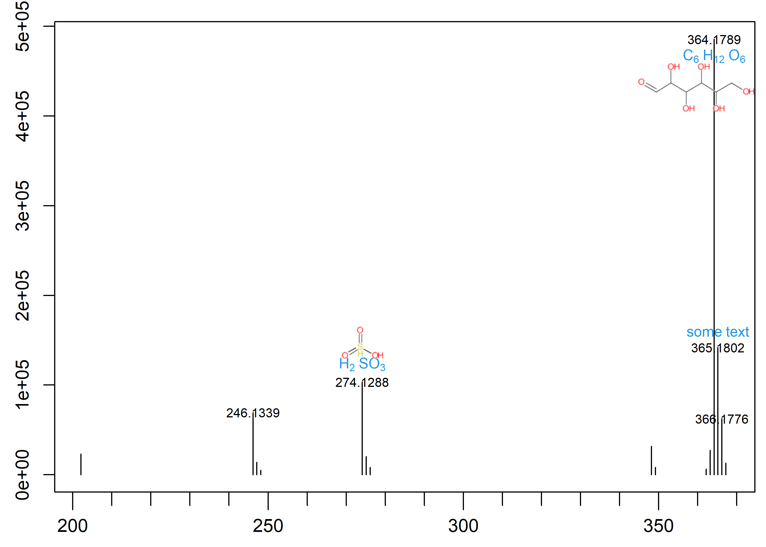 Finally, InterpretMSSpectrum contains a number of helper functions, to count chemical elements in sum formulas, calculate the exact mass of a sum formula or check if a sum formula is a potential subset of another.