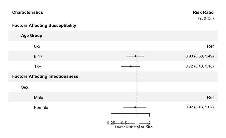 # Covariate effects as relative risks with CrIs