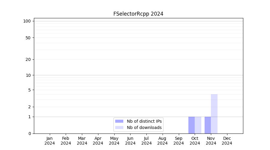 Number of downloads for software package FSelectorRcpp, year by year, from 2025 back to 2014 (years with no downloads are omitted):