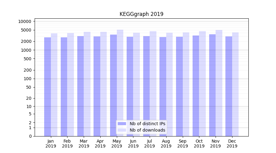 Number of downloads for software package KEGGgraph, year by year, from 2025 back to 2014 (years with no downloads are omitted):