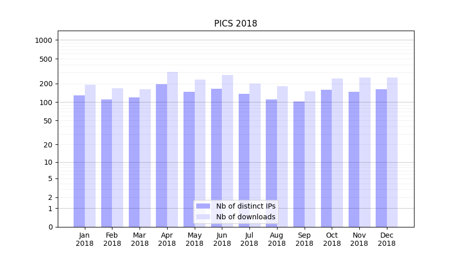 Number of downloads for software package PICS, year by year, from 2025 back to 2014 (years with no downloads are omitted):