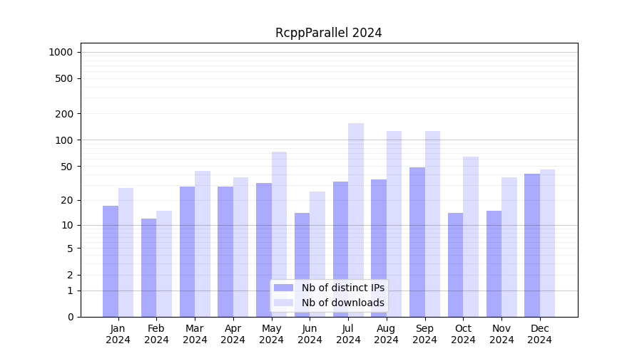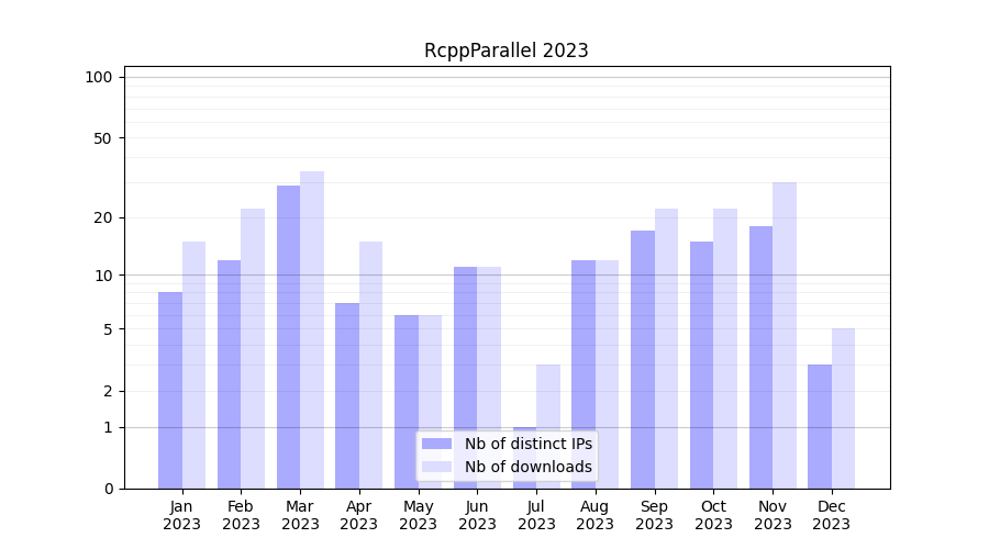 Download stats for software package RcppParallel