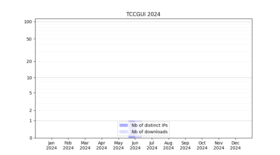 Number of downloads for software package TCCGUI, year by year, from 2025 back to 2014 (years with no downloads are omitted):