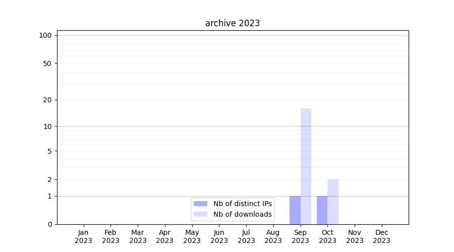 Number of downloads for software package archive, year by year, from 2025 back to 2014 (years with no downloads are omitted):