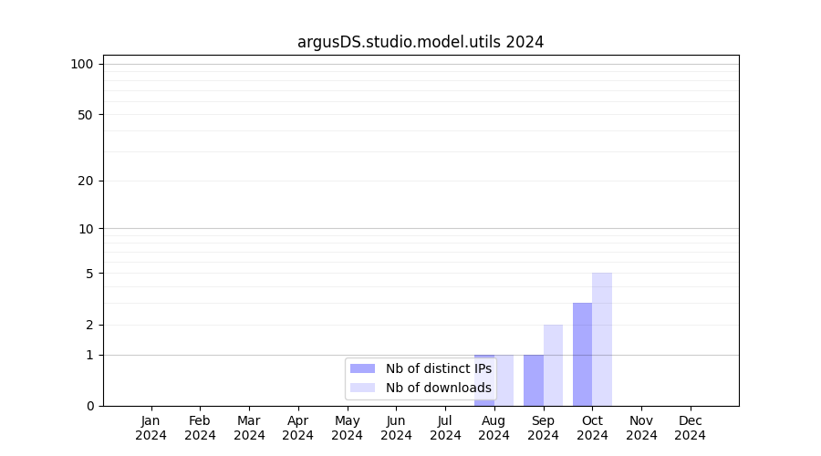 Number of downloads for software package argusDS.studio.model.utils, year by year, from 2025 back to 2014 (years with no downloads are omitted):