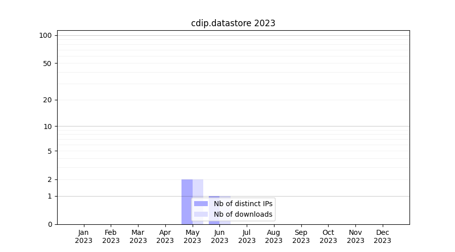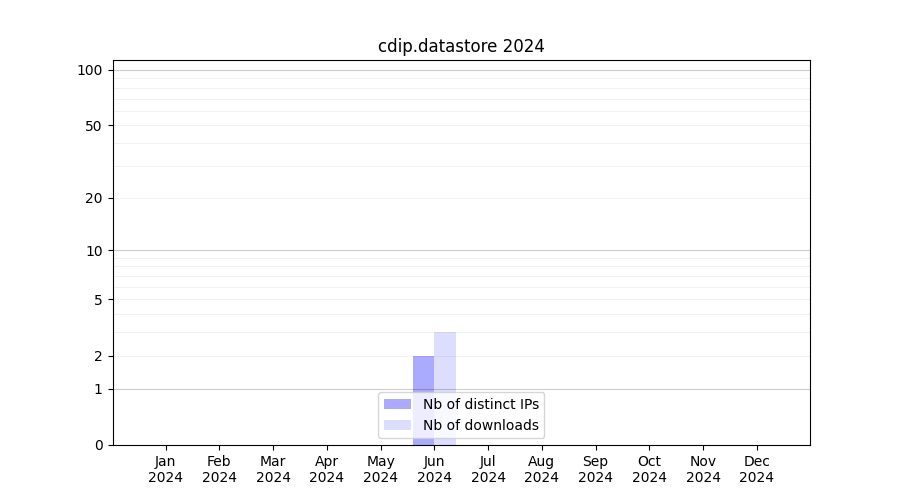 Number of downloads for software package cdip.datastore, year by year, from 2025 back to 2014 (years with no downloads are omitted):