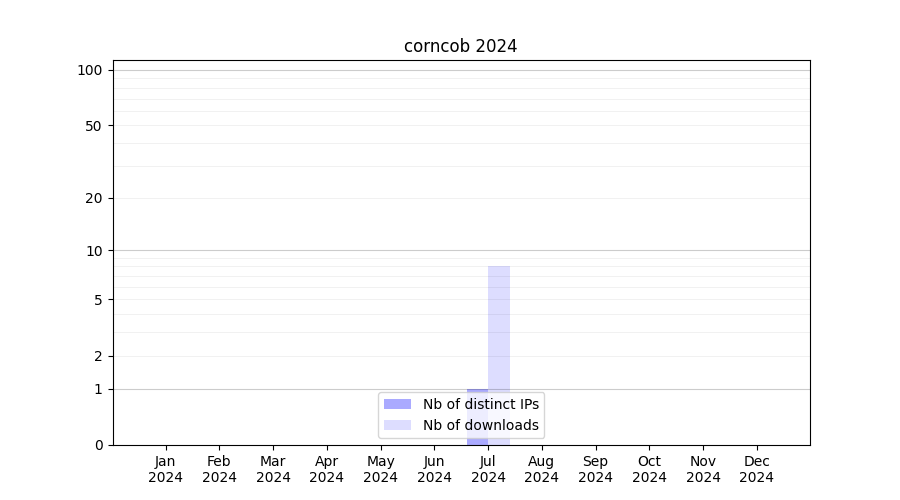 Number of downloads for software package corncob, year by year, from 2025 back to 2014 (years with no downloads are omitted):