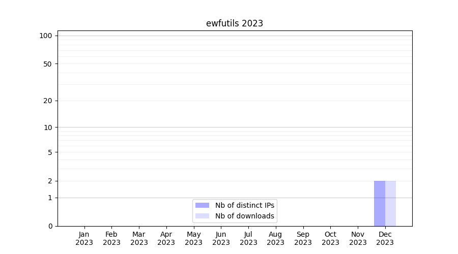 Number of downloads for software package ewfutils, year by year, from 2025 back to 2014 (years with no downloads are omitted):