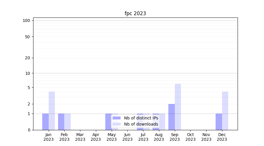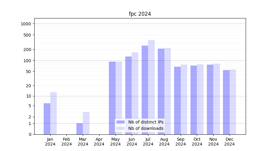 Number of downloads for software package fpc, year by year, from 2025 back to 2014 (years with no downloads are omitted):