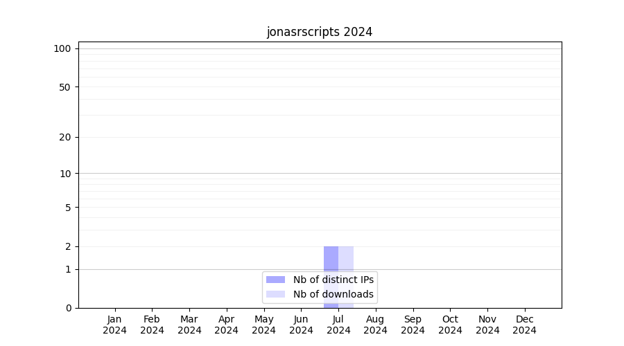 Number of downloads for software package jonasrscripts, year by year, from 2025 back to 2014 (years with no downloads are omitted):