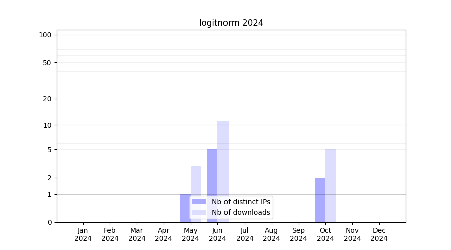 Number of downloads for software package logitnorm, year by year, from 2025 back to 2014 (years with no downloads are omitted):