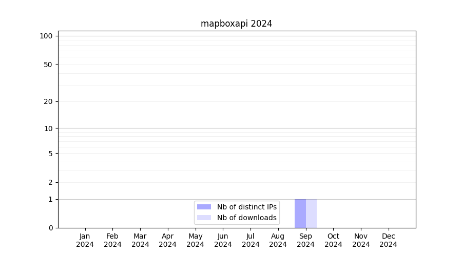 Number of downloads for software package mapboxapi, year by year, from 2025 back to 2014 (years with no downloads are omitted):