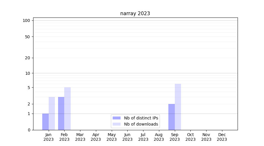 Number of downloads for software package narray, year by year, from 2025 back to 2014 (years with no downloads are omitted):