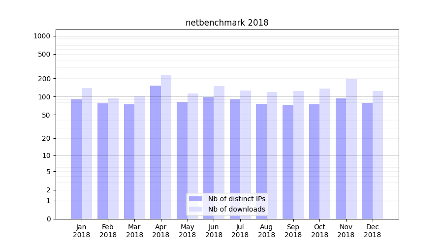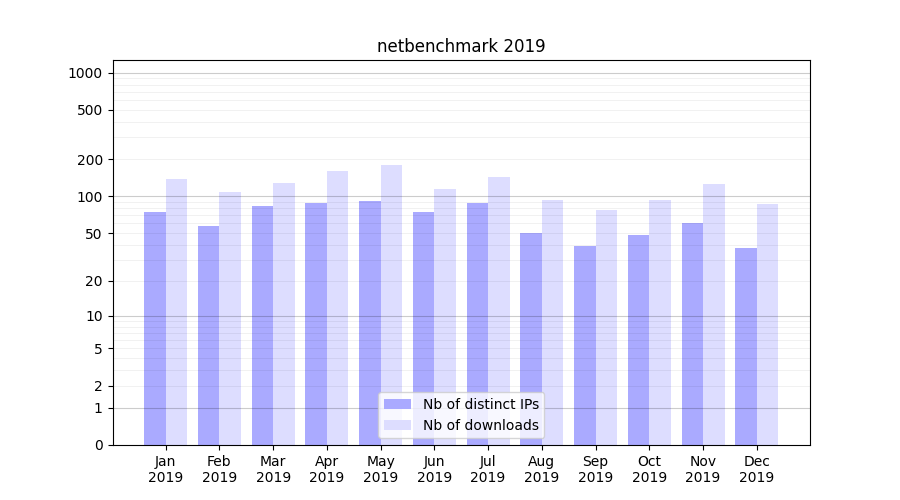 Number of downloads for software package netbenchmark, year by year, from 2025 back to 2014 (years with no downloads are omitted):