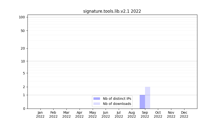 Number of downloads for software package signature.tools.lib.v2.1, year by year, from 2025 back to 2014 (years with no downloads are omitted):