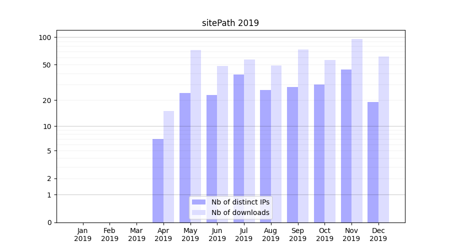 Number of downloads for software package sitePath, year by year, from 2025 back to 2014 (years with no downloads are omitted):