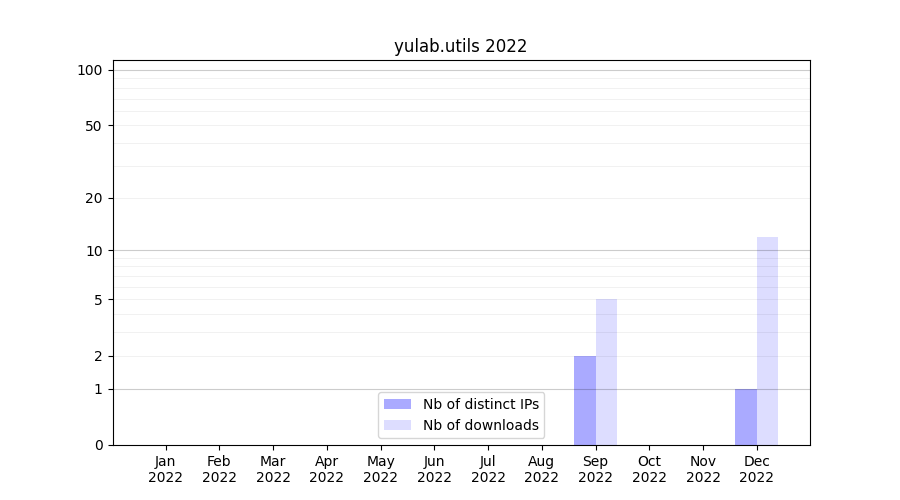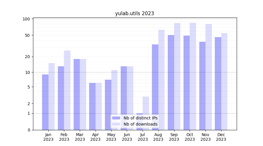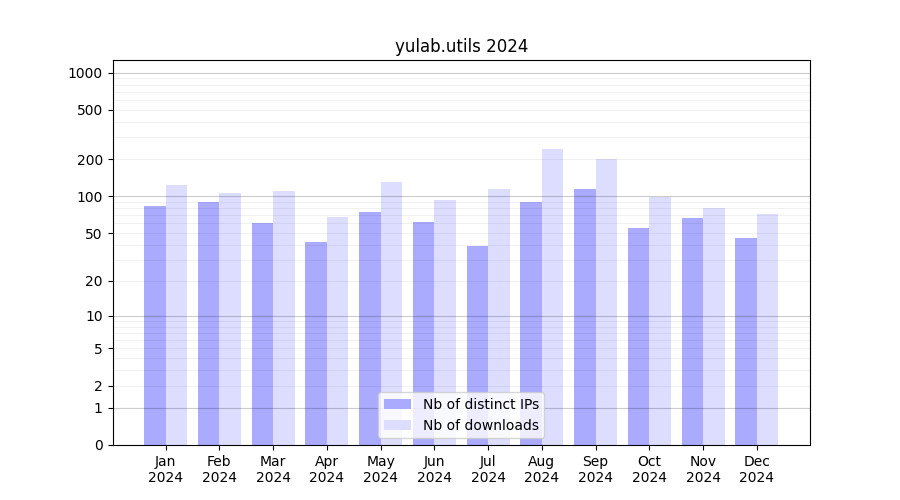 Number of downloads for software package yulab.utils, year by year, from 2025 back to 2014 (years with no downloads are omitted):