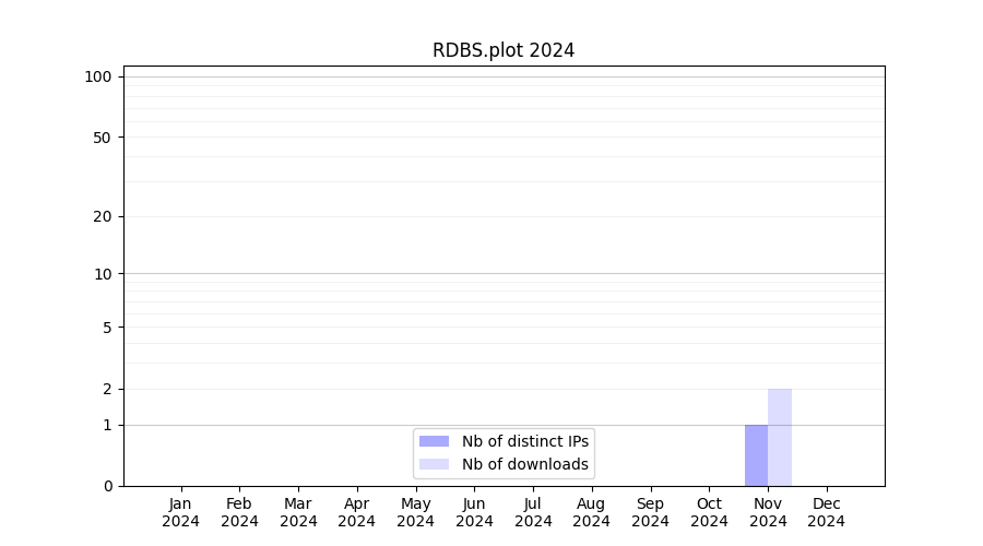 Number of downloads for annotation package RDBS.plot, year by year, from 2025 back to 2014 (years with no downloads are omitted):