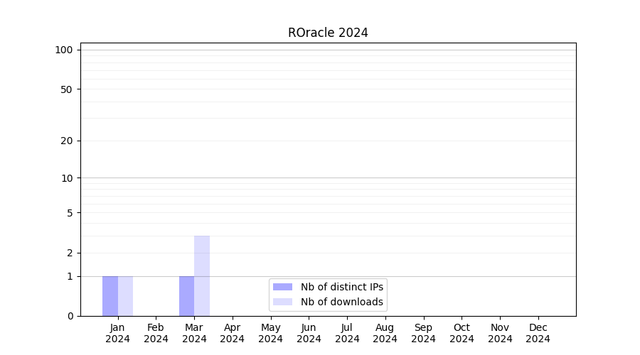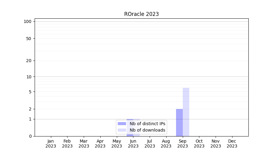Number of downloads for annotation package ROracle, year by year, from 2025 back to 2014 (years with no downloads are omitted):