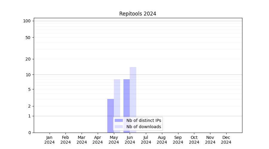 Number of downloads for annotation package Repitools, year by year, from 2025 back to 2014 (years with no downloads are omitted):