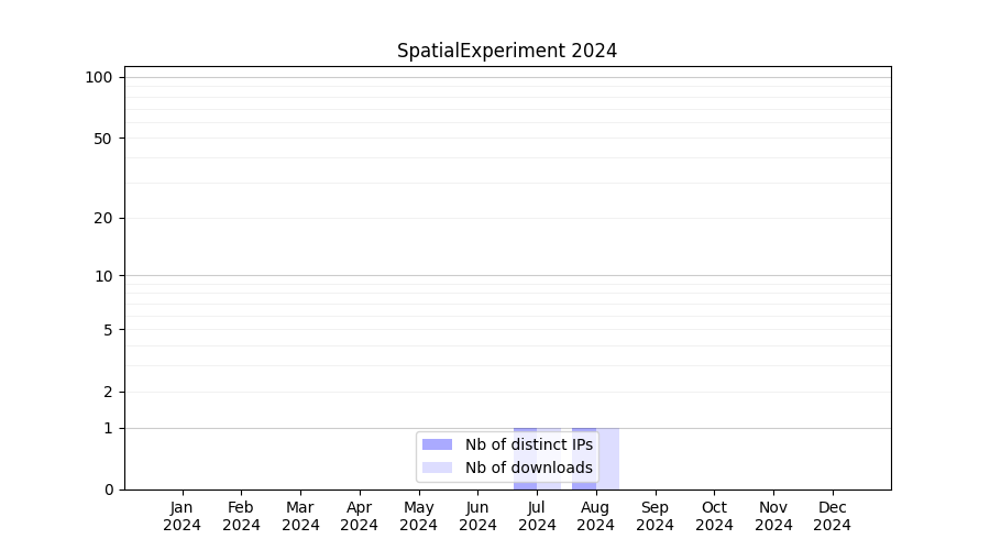 Number of downloads for annotation package SpatialExperiment, year by year, from 2025 back to 2014 (years with no downloads are omitted):