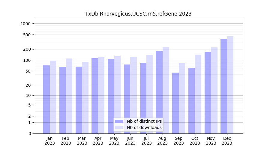 Download stats for annotation package TxDb.Rnorvegicus.UCSC.rn5.refGene