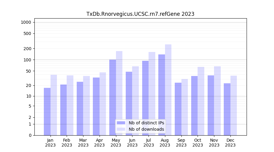 Download stats for annotation package TxDb.Rnorvegicus.UCSC.rn7.refGene