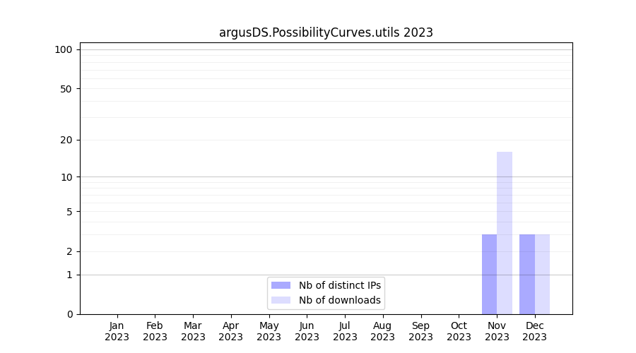 Number of downloads for annotation package argusDS.PossibilityCurves.utils, year by year, from 2025 back to 2014 (years with no downloads are omitted):