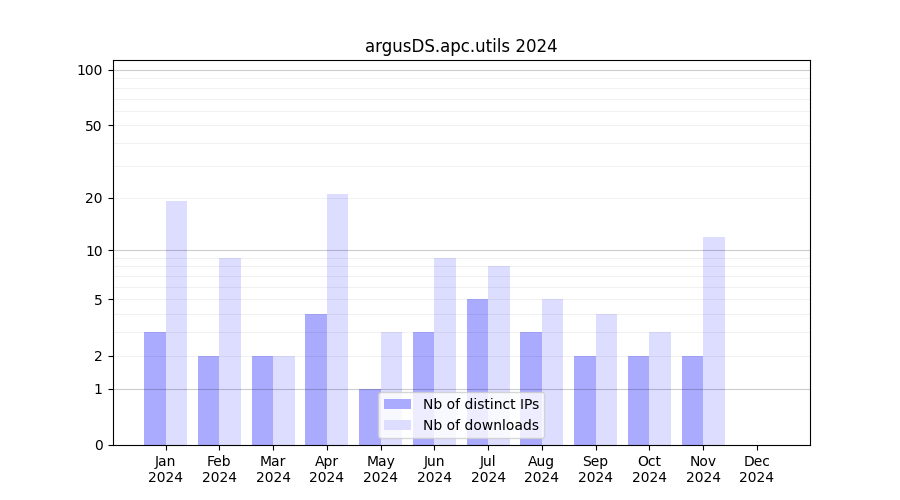 Number of downloads for annotation package argusDS.apc.utils, year by year, from 2025 back to 2014 (years with no downloads are omitted):