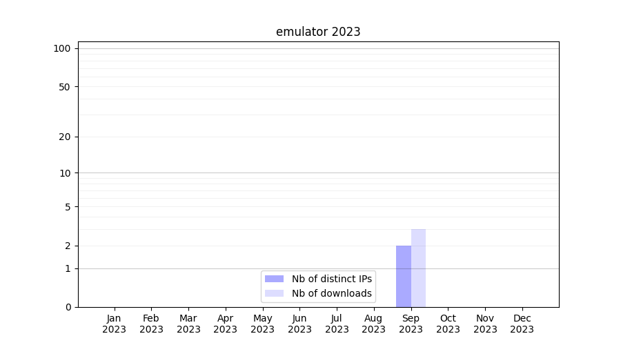 Number of downloads for annotation package emulator, year by year, from 2025 back to 2014 (years with no downloads are omitted):