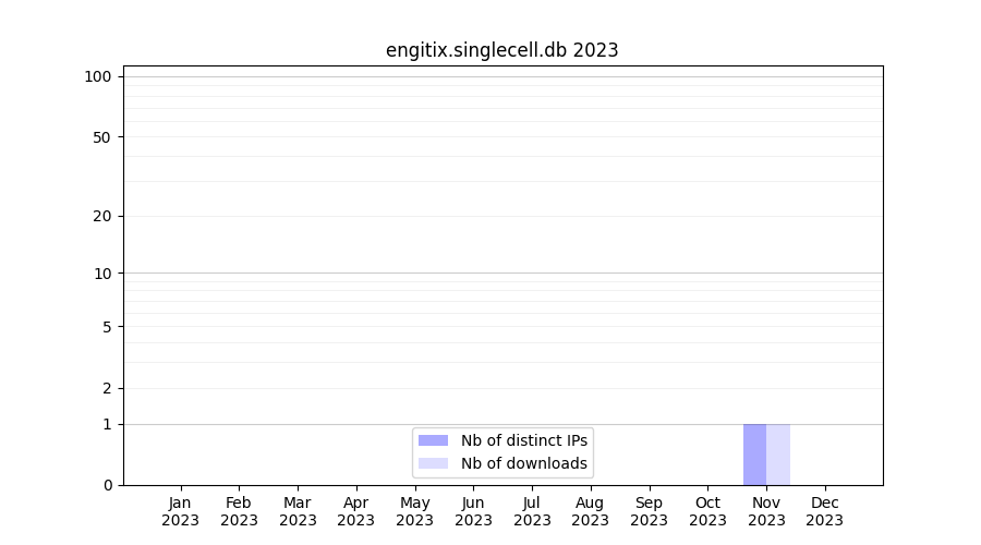 Number of downloads for annotation package engitix.singlecell.db, year by year, from 2025 back to 2014 (years with no downloads are omitted):