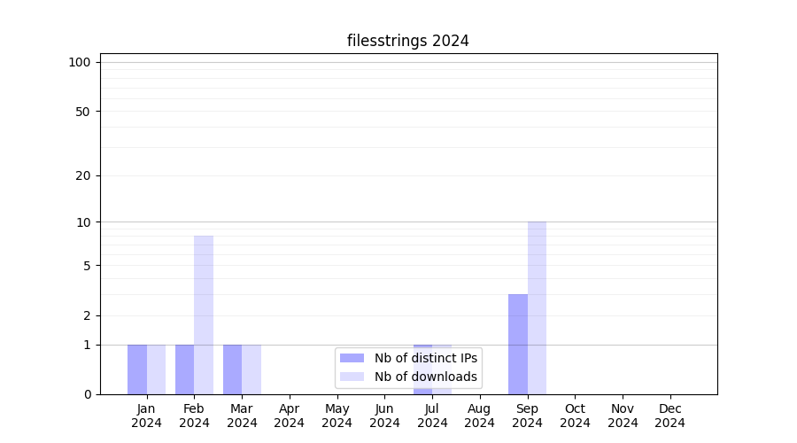 Number of downloads for annotation package filesstrings, year by year, from 2025 back to 2014 (years with no downloads are omitted):