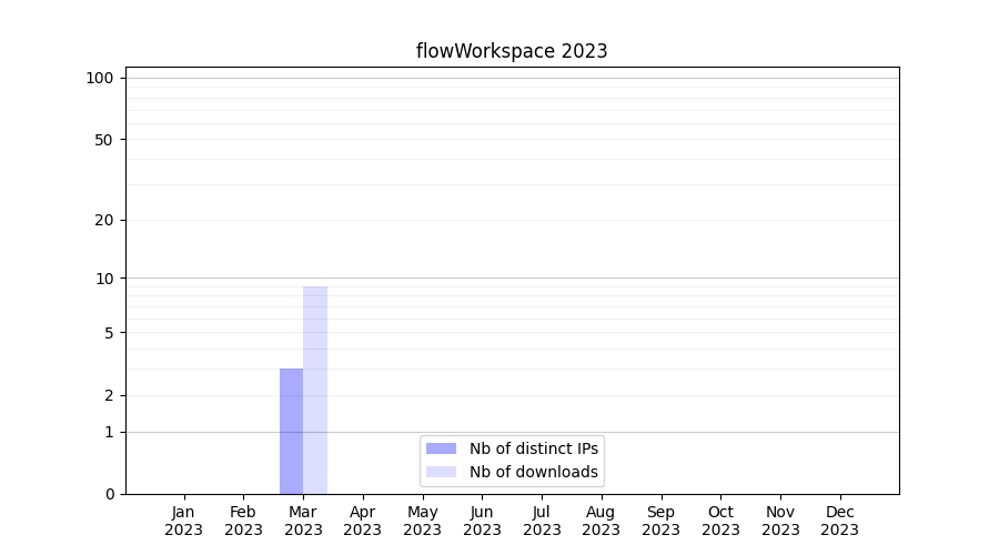 Number of downloads for annotation package flowWorkspace, year by year, from 2025 back to 2014 (years with no downloads are omitted):
