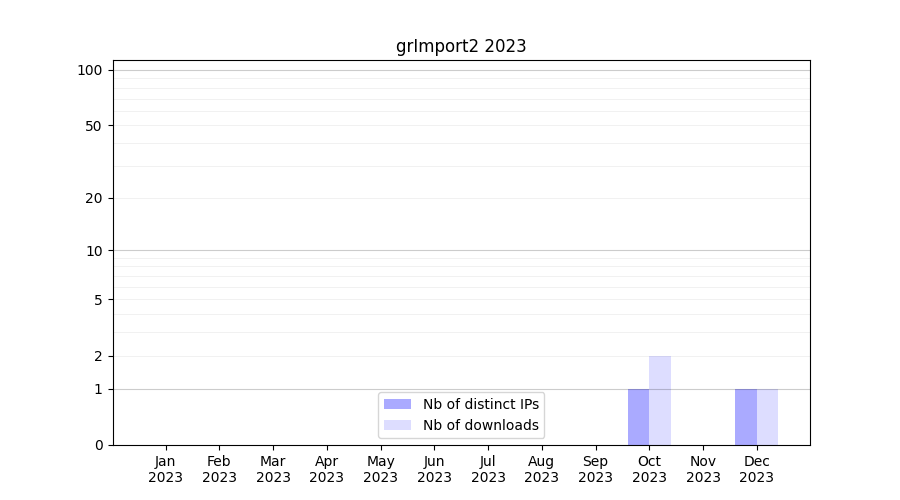 Number of downloads for annotation package grImport2, year by year, from 2025 back to 2014 (years with no downloads are omitted):