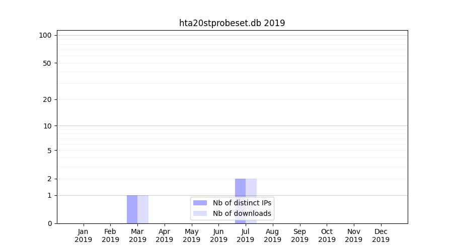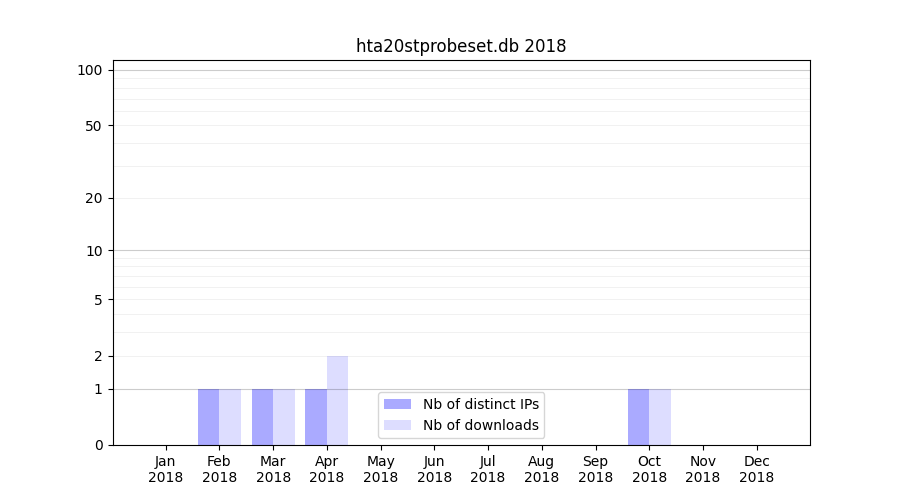 Number of downloads for annotation package hta20stprobeset.db, year by year, from 2025 back to 2014 (years with no downloads are omitted):