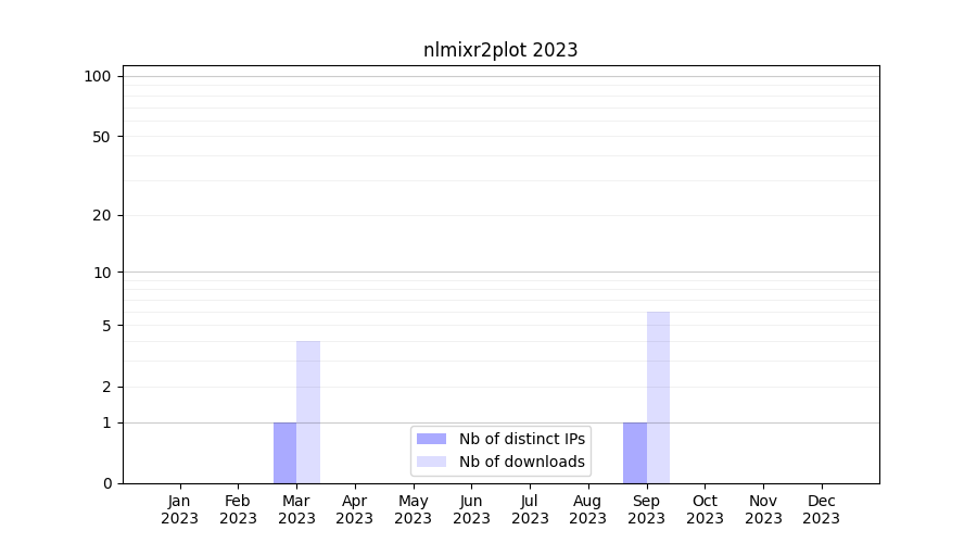Number of downloads for annotation package nlmixr2plot, year by year, from 2025 back to 2014 (years with no downloads are omitted):
