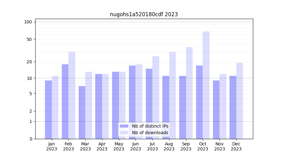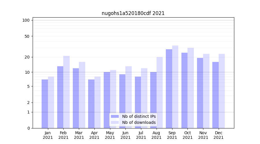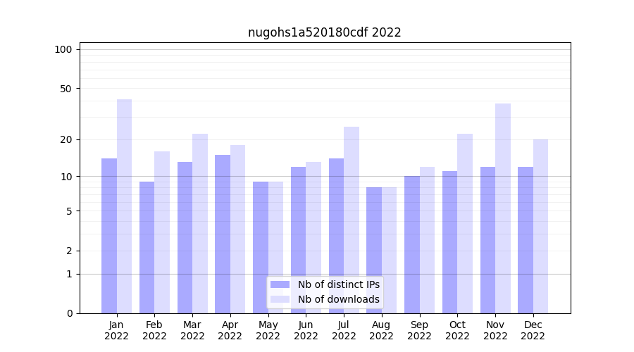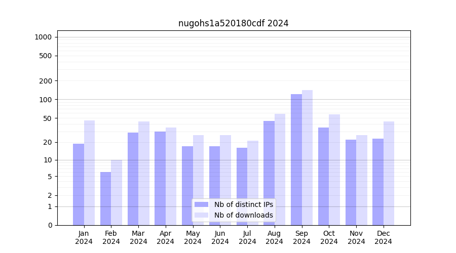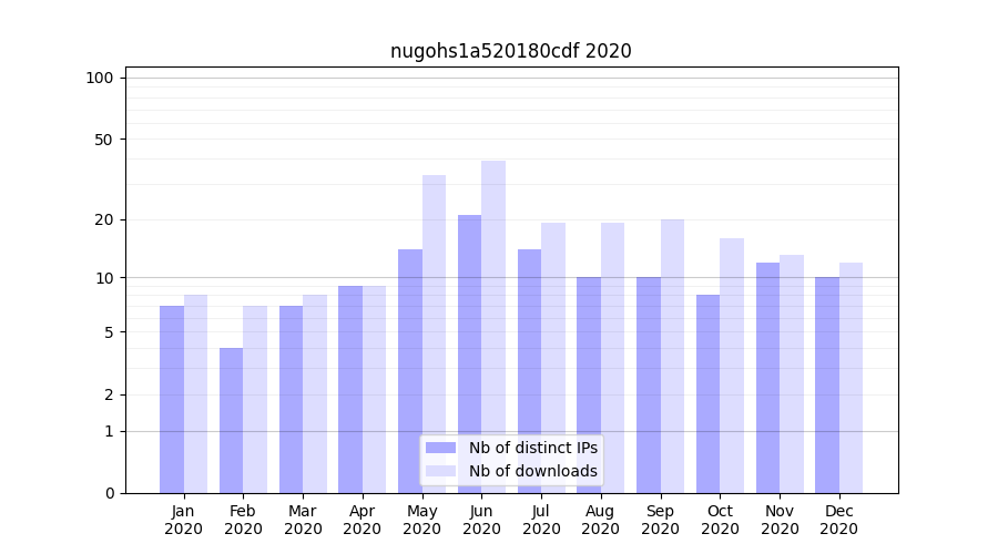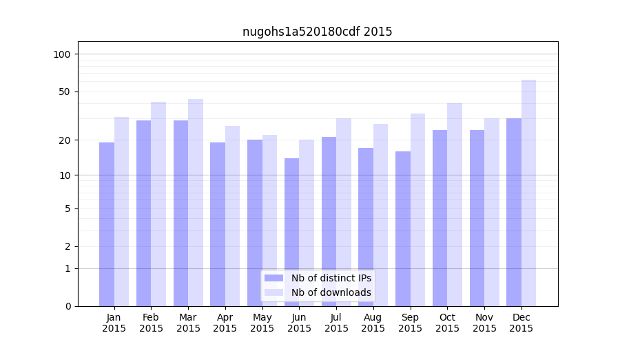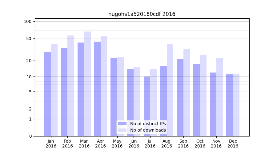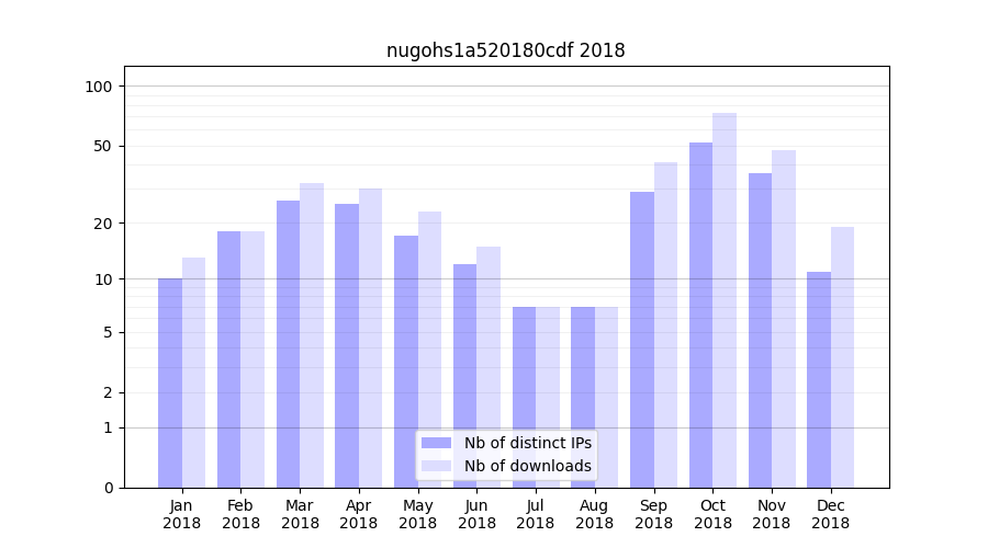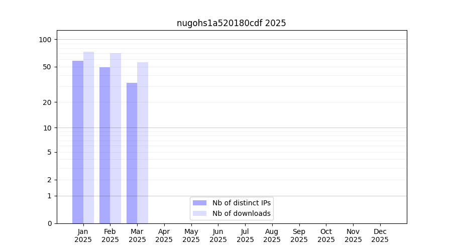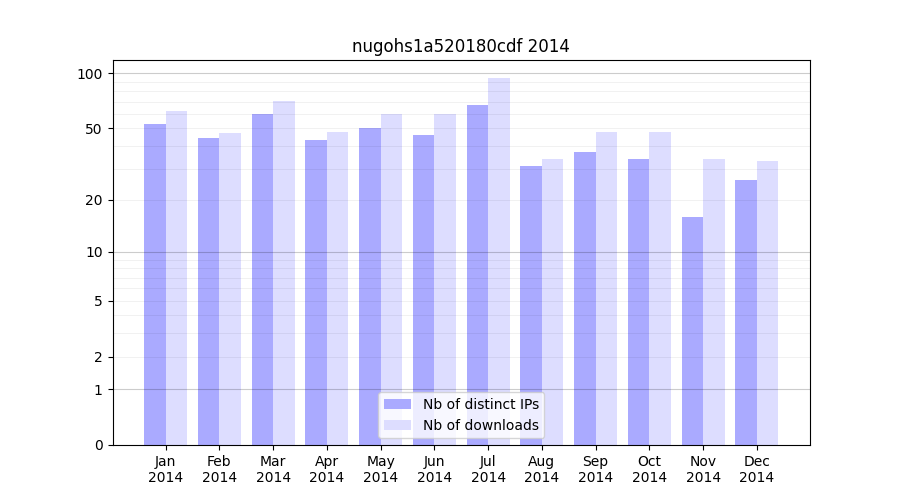 Number of downloads for annotation package nugohs1a520180cdf, year by year, from 2025 back to 2014 (years with no downloads are omitted):