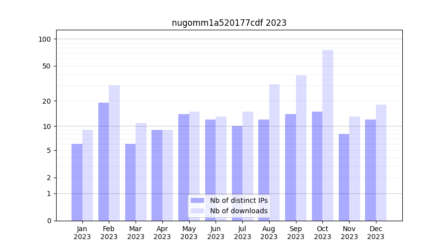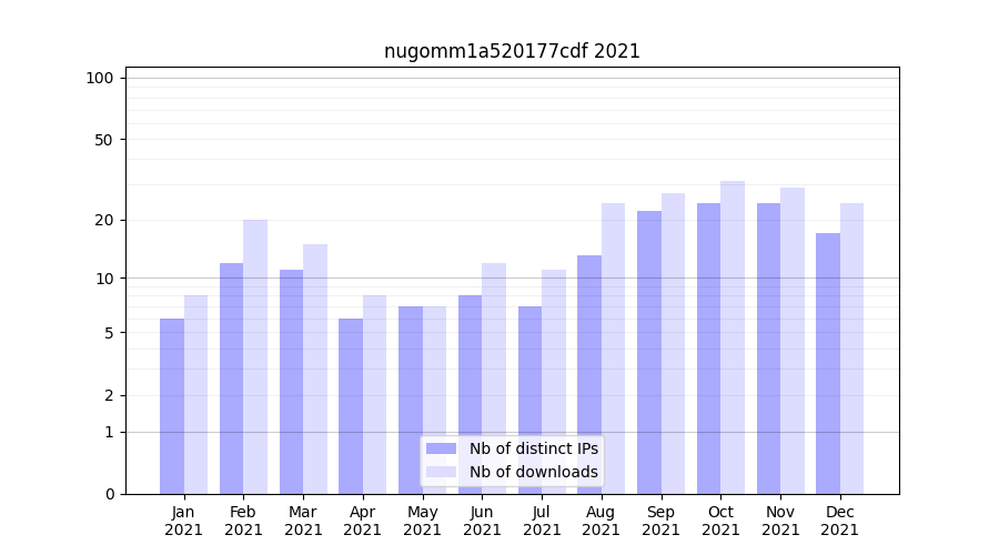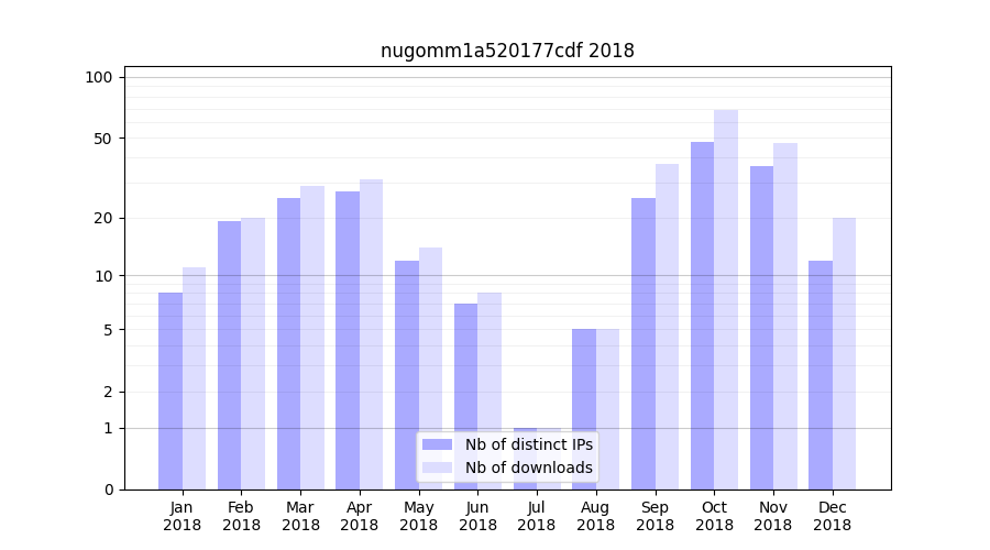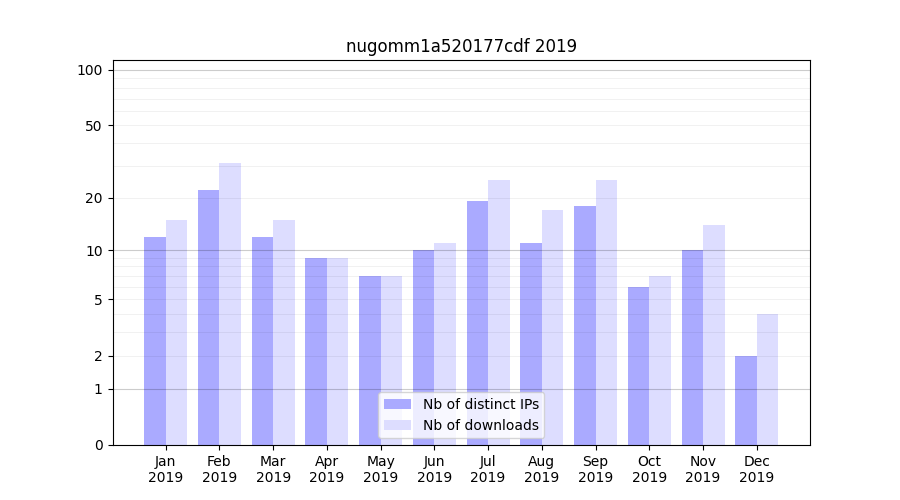 Number of downloads for annotation package nugomm1a520177cdf, year by year, from 2025 back to 2014 (years with no downloads are omitted):