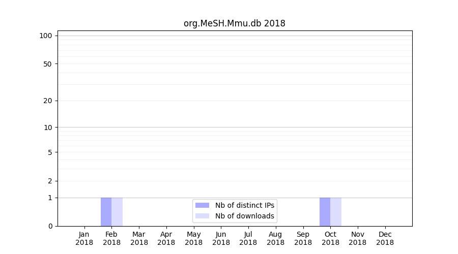 Number of downloads for annotation package org.MeSH.Mmu.db, year by year, from 2025 back to 2014 (years with no downloads are omitted):
