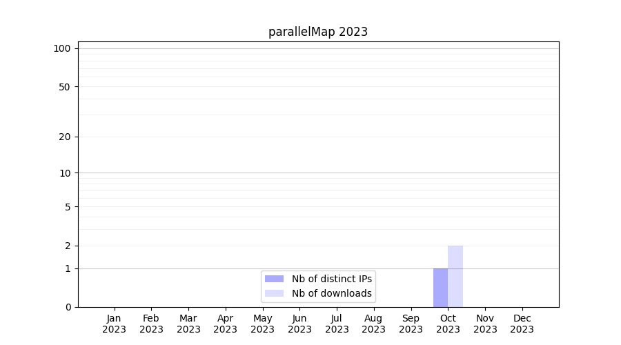 Number of downloads for annotation package parallelMap, year by year, from 2025 back to 2014 (years with no downloads are omitted):