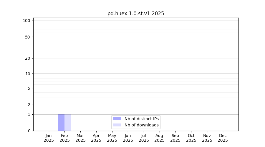 Number of downloads for annotation package pd.huex.1.0.st.v1, year by year, from 2025 back to 2014 (years with no downloads are omitted):