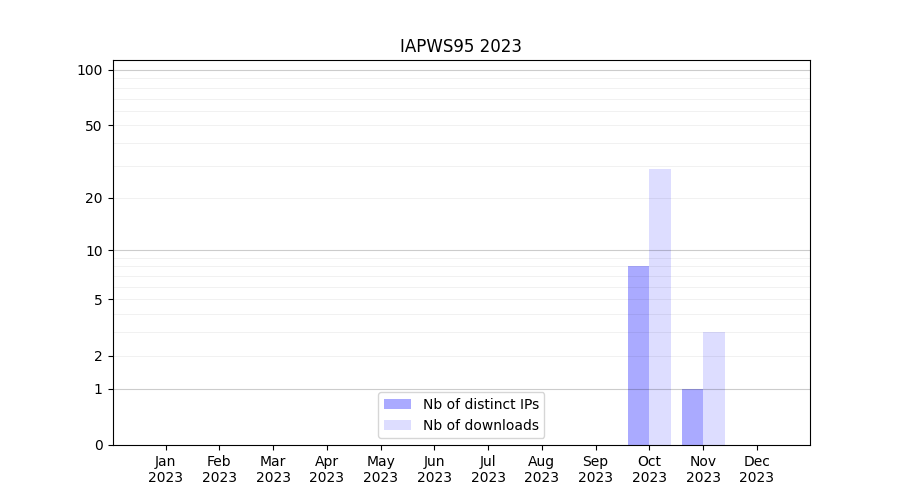 Number of downloads for experiment package IAPWS95, year by year, from 2025 back to 2014 (years with no downloads are omitted):