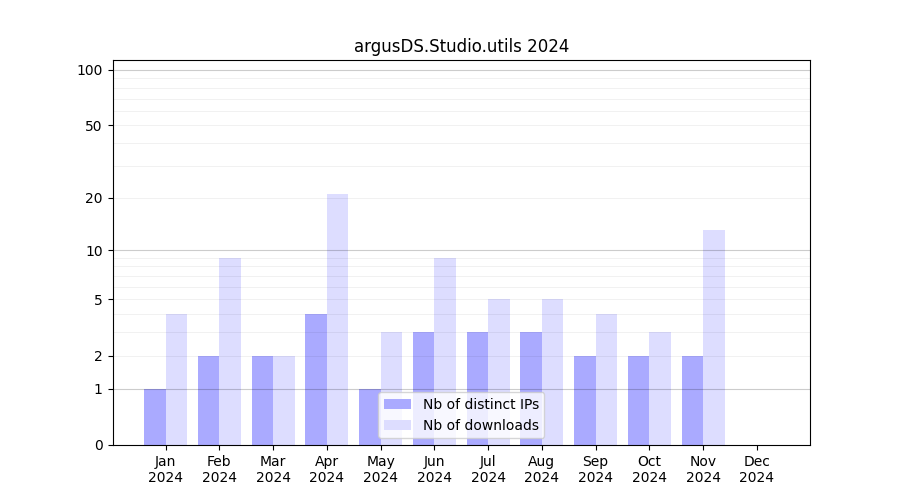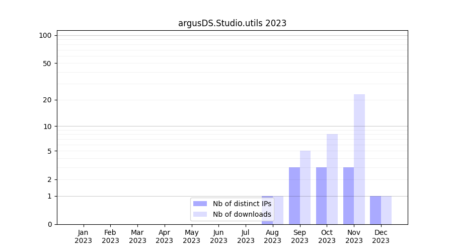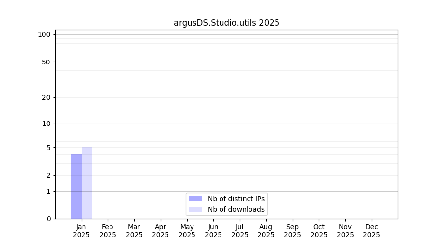 Number of downloads for experiment package argusDS.Studio.utils, year by year, from 2025 back to 2014 (years with no downloads are omitted):