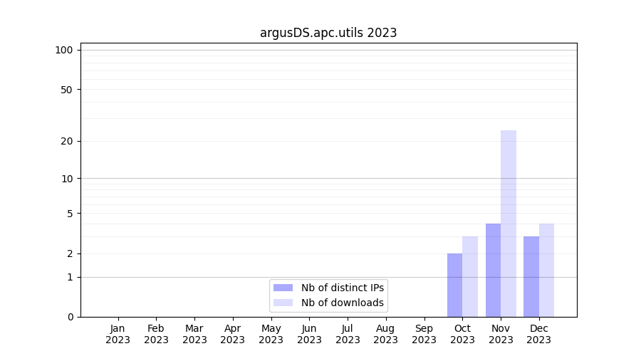 Number of downloads for experiment package argusDS.apc.utils, year by year, from 2025 back to 2014 (years with no downloads are omitted):