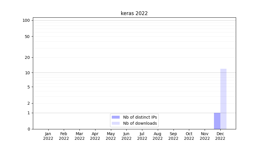Number of downloads for experiment package keras, year by year, from 2025 back to 2014 (years with no downloads are omitted):